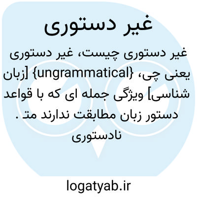 {ungrammatical} [زبان شناسی] ویژگی جمله ای که با قواعد دستور زبان مطابقت ندارند متـ. نادستوری