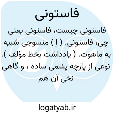 فاستونی. ( اِ ) منسوجی شبیه به ماهوت. ( یادداشت بخط مؤلف ). نوعی از پارچه پشمی ساده، و گاهی نخی آن هم بافته میشود. این لفظ روسی است و همراه پارچه مذکور از روس به ایران آمده است. ( فرهنگ نظام ).
