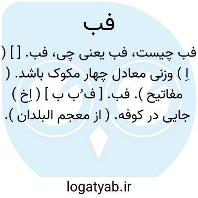 فب. [ ف ُب ب ] ( اِخ ) جایی در کوفه. ( از معجم البلدان ). موضعی است به کوفه. یا بطنی است از همدان. ( منتهی الارب ).