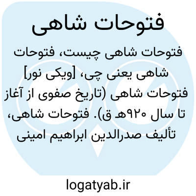 [ویکی فقه] فتوحات شاهی (کتاب). «فتوحات شاهی»، تالیف صدرالدین ابراهیم امینی هروی، به تاریخ صفویه از آغاز تا سال ۹۲۰ ق پرداخته است.