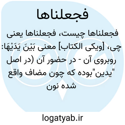 [ویکی الکتاب] معنی بَیْنَ یَدَیْهَا: روبروی آن - در حضور آن (در اصل "یدین"بوده که چون مضاف واقع شده نون آن حذف گردیده است. برای کلمه ید معانی زیادی غیر از دست ذکر کردهاند، و لیکن باید دانست که این کلمه دارای چند معنا نیست بلکه تنها به معنای دست است و در سایر معانی بطور استعاره بکار می...