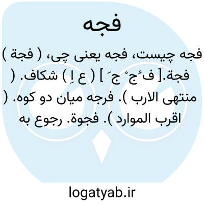 ( فجة ) فجة.[ ف ُج ْ ج َ ] ( ع اِ ) شکاف. ( منتهی الارب ). فرجه میان دو کوه. ( اقرب الموارد ). فجوة. رجوع به فجوه شود.