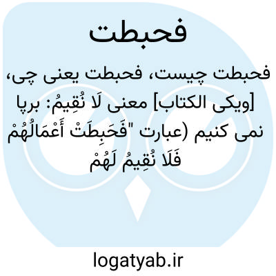 [ویکی الکتاب] معنی لَا نُقِیمُ: برپا نمی کنیم (عبارت "فَحَبِطَتْ أَعْمَالُهُمْ فَلَا نُقِیمُ لَهُمْ یَوْمَ ﭐلْقِیَامَةِ وَزْناً " یعنی: پس اعمالشان تباه و بی اثر شد لذا میزانی برای سنجش اعمالشان در روز قیامت به پا نمی کنیم)