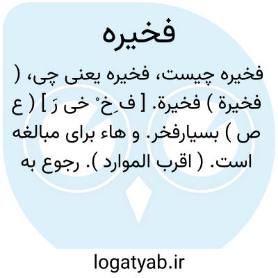 ( فخیرة ) فخیرة. [ ف ِخ ْ خی رَ ] ( ع ص ) بسیارفخر. و هاء برای مبالغه است. ( اقرب الموارد ). رجوع به فخر شود.