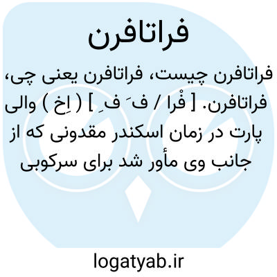 فراتافرن. [ فْرا / ف َ ف ِ ] ( اِخ ) والی پارت در زمان اسکندر مقدونی که از جانب وی مأور شد برای سرکوبی شورش هراتیها به کمک سرداران دیگر بشتابد. این شخص ایرانی بوده است و پس از تقسیم ممالک اسکندر نیز بنابه روایت دیودور ( کتاب 18 بند 3 )بار دیگر پارت را به او واگذاشته اند، بخصوص دیودور در نقل این روایت او را «فراتافرن ایرانی » خوانده است. رجوع به ایران باستان ص 1658 و 1966 و 2007 شود.