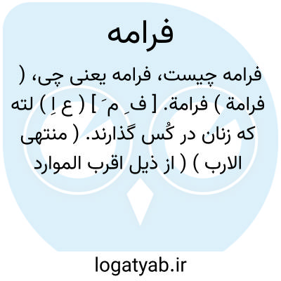 ( فرامة ) فرامة. [ ف ِ م َ ] ( ع اِ ) لته که زنان در کُس گذارند. ( منتهی الارب ) ( از ذیل اقرب الموارد از لسان العرب ). لته حیض. ( منتهی الارب ). رجوع به فِرام شود.