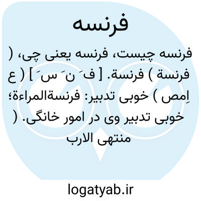 ( فرنسة ) فرنسة. [ ف َ ن َ س َ ] ( ع اِمص ) خوبی تدبیر: فرنسةالمراءة؛ خوبی تدبیر وی در امور خانگی. ( منتهی الارب ).