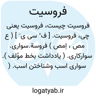 فروسیت. [ ف ُ سی ی َ ] ( ع مص، اِمص ) فروسة.سواری. سوارکاری. ( یادداشت بخط مؤلف ). سواری اسب وشناختن اسب. ( غیاث ). رجوع به فروسة و فروسیة شود.