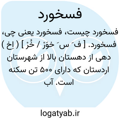 فسخورد. [ ف َ س َ خوَرْ / خُرْ ] ( اِخ ) دهی از دهستان بالا از شهرستان اردستان که دارای 500 تن سکنه است. آب مشروب آن از قنات و محصول عمده اش غله، خشکبار، کتیرا، تره بار، پشم و روغن است. ( از فرهنگ جغرافیایی ایران ج 10 ).