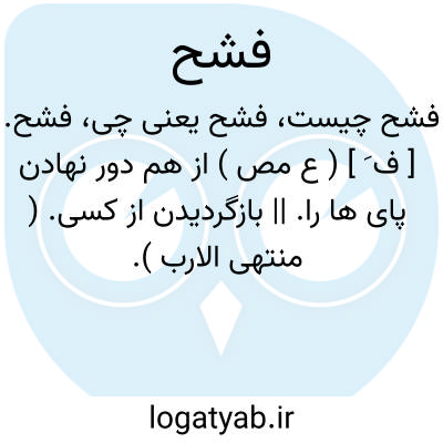 فشح. [ ف َ ] ( ع مص ) از هم دور نهادن پای ها را. || بازگردیدن از کسی. ( منتهی الارب ).