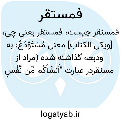 معنی مُسْتَقَرٍّ: محل استقرار- قرارگاه دائمی - استقرار یافته ومحقق شده (مراد از مستقردر عبارت "أَنشَأَکُم مِّن نَّفْسٍ وَاحِدَةٍ فَمُسْتَقَرٌّ وَمُسْتَوْدَعٌ " آن افرادی است که دوران سیر در اصلاب را طی کرده و متولد شده و در زمین که به مقتضای آیه و لکم فی الارض مستقر ق...