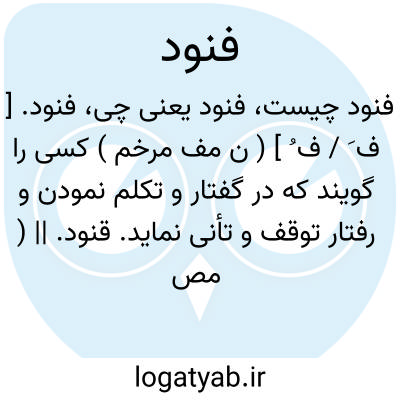 فنود. [ ف َ / ف ُ ] ( ن مف مرخم ) کسی را گویند که در گفتار و تکلم نمودن و رفتار توقف و تأنی نماید. قنود. || ( مص مرخم، اِمص ) به معنی ناله و زاری هم گفته اند. ( برهان ). رجوع به فنودن شود.