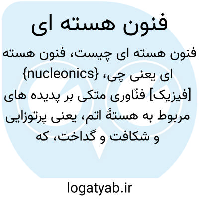 {nucleonics} [فیزیک] فنّاوری متکی بر پدیده های مربوط به هستۀ اتم، یعنی پرتوزایی و شکافت و گداخت، که شامل واکنشگاه ها/ رآکتورهای هسته ای و کاربردهای متنوع رادیوایزوتوپ ها و تابش و شتاب دهنده های ذرات و وسایل آشکارسازی تابش می شود