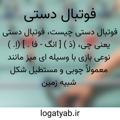 (دَ ) [ انگ - فا. ] (اِ. ) نوعی بازی با وسیله ای میز مانند معمولاً چوبی و مستطیل شکل شبیه زمین فوتبال در اندازه های مختلف که از میله هایی دارای چند آدمک و دو دروازه تشکیل می شود و هر یک از بازیکنان سعی می کنند با چرخاندن میله ها و ضربه زدن به توپ توسط آد