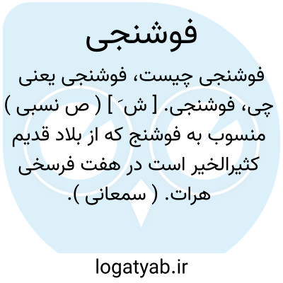 فوشنجی. [ ش َ ] ( ص نسبی ) منسوب به فوشنج که از بلاد قدیم کثیرالخیر است در هفت فرسخی هرات. ( سمعانی ).