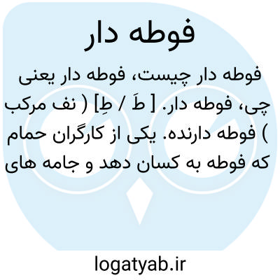 فوطه دار. [ طَ / طِ] ( نف مرکب ) فوطه دارنده. یکی از کارگران حمام که فوطه به کسان دهد و جامه های آنان را نگاه دارد. || کسی که فوطه بسته باشد. || در هند مأمور دولتی را گویند که وجوه رسیده از ولایات و ایالات تحویل او میشود. خزانه دار. ( فرهنگ فارسی معین ).