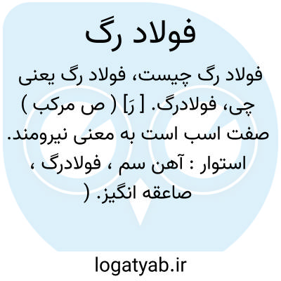 فولادرگ. [ رَ] ( ص مرکب ) صفت اسب است به معنی نیرومند. استوار: آهن سم، فولادرگ، صاعقه انگیز. ( سندبادنامه ).