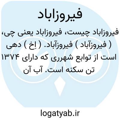 ( فیروزآباد ) فیروزآباد. ( اِخ ) دهی است از توابع شهرری که دارای 1374 تن سکنه است. آب آن از قنات و در بهار از سیلاب رود کن است. محصول عمده اش غله، صیفی و چغندر است. ( از فرهنگ جغرافیایی ایران ج 1 ).