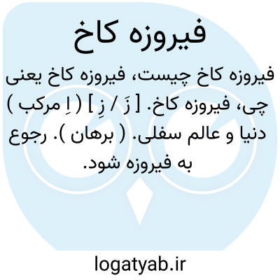 فیروزه کاخ. [ زَ / زِ ] ( اِ مرکب ) دنیا و عالم سفلی. ( برهان ). رجوع به فیروزه شود.