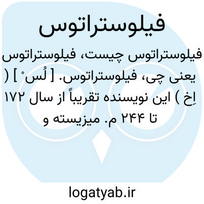 فیلوستراتوس. [ لُس ْ ] ( اِخ ) این نویسنده تقریباً از سال 172 تا 244 م. میزیسته و معاصر بلاش سوم و چهارم و پنجم بوده. وی رمانی راجع به آلونیوس تیانا نوشته که جاهایی از آن اطلاعاتی درباب پارت میدهد، و تصور میکنند که این جاها از حقیقت دور نیست. ( ایران باستان پیرنیا حاشیه ص 2659 ).