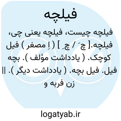 فیلچه.[ چ َ / چ ِ ] ( اِ مصغر ) فیل کوچک. ( یادداشت مؤلف ). بچه فیل. فیل بچه. ( یادداشت دیگر ). || زن فربه و درشت استخوان و کلان و چاق. ( یادداشت مؤلف ).