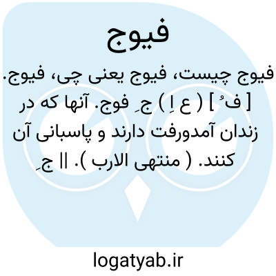 فیوج. [ ف ُ ] ( ع اِ ) ج ِ فوج. آنها که در زندان آمدورفت دارند و پاسبانی آن کنند. ( منتهی الارب ). || ج ِ فیج است که معرب پیک باشد. ( از یادداشتهای مؤلف ): تا آنگاه که بواسطه کثرت فیوج و بسیاری ِرسل که از رشید بدو آمدند حجت بر او لازم شد. ( تاریخ قم ). و از رؤسای فیوج و فراشان و بوّابان بسیار و بیحد بوده اند. ( تاریخ قم ). || کولی. غره چی. غربال بند. قرشمال. چیگانه. ( یادداشتهای مؤلف ).