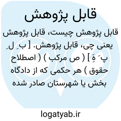 قابل پژوهش. [ ب ِ ل ِ پ َ هَِ ] ( ص مرکب ) ( اصطلاح حقوق ) هر حکمی که از دادگاه بخش یا شهرستان صادر شده باشد. احکام وقرارهائی که از محکمه بدوی ( اعم از دادگاه شهرستان و دادگاه بخش ) حضوراً صادر شده باشد در مدت معین قابل پژوهش است. رجوع به قانون آئین دادرسی مدنی شود.