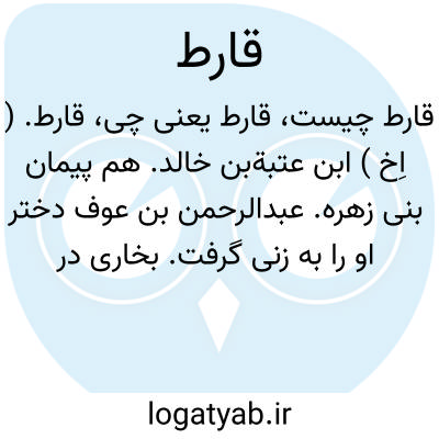 قارط. ( اِخ ) ابن عتبةبن خالد. هم پیمان بنی زهره. عبدالرحمن بن عوف دختر او را به زنی گرفت. بخاری در تعلیقات نکاح از این داستان یاد کرده و گفته است که ابن سعد آن را در شرح حال عبدالرحمن آورده است. ( الاصابة قسم اول ج 5 ص 224 ).