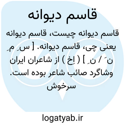 قاسم دیوانه. [ س ِ م ِ ن َ / ن ِ ] ( اِخ ) از شاعران ایران وشاگرد صائب شاعر بوده است. سرخوش گوید وی به هند سفر نکرده ولی در آنجا شهرت بسیار دارد. دیوان اشعار وی در نولکشور هند چاپ شده است. ( الذریعه ج 9 ص 335 ).