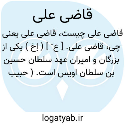 قاضی علی. [ ع َ ] ( اِخ ) یکی از بزرگان و امیران عهد سلطان حسین بن سلطان اویس است. ( حبیب السیر چ قدیم جزء اول از ج 3 ص 82 و 83 و 84 ).