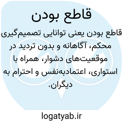 قاطع بودن به معنای داشتن قدرت تصمیم‌گیری محکم و بدون تردید است. فرد قاطع کسی است که در شرایط دشوار و موقعیت‌های پرابهام، پس از بررسی منطقی و آگاهانه، تصمیم خود را می‌گیرد و در اجرای آن ثابت‌قدم می‌ماند. قاطعیت نشانه‌ی اعتمادبه‌نفس، آگاهی از هدف و استقلال فکری است و در زندگی فردی و اجتماعی، به ویژه در مدیریت و رهبری، از ویژگی‌های بسیار مهم به شمار می‌آید.