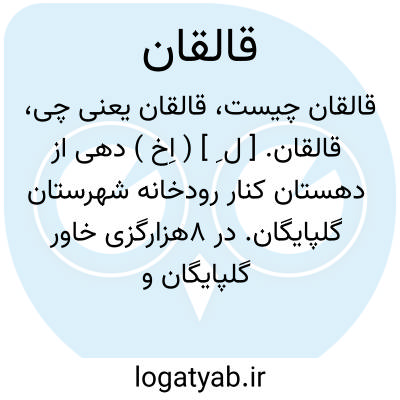 قالقان. [ ل ِ ] ( اِخ ) دهی از دهستان کنار رودخانه شهرستان گلپایگان. در 8هزارگزی خاور گلپایگان و 6هزارگزی خاور شوسه گلپایگان به خمین و در جلگه واقع و هوای آن گرمسیری مالاریایی است.347 تن سکنه دارد. آب آن از قنات و محصول آن غلات، لبنیات، تریاک، پنبه و شغل اهالی زراعت و گله داری است. راه مالرو دارد. ( از فرهنگ جغرافیایی ایران ج 6 ).