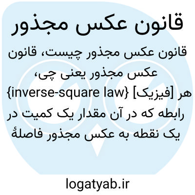 {inverse-square law} [فیزیک] هر رابطه که در آن مقدار یک کمیت در یک نقطه به عکس مجذور فاصلۀ آن از نقطه ای دیگر بستگی داشته باشد