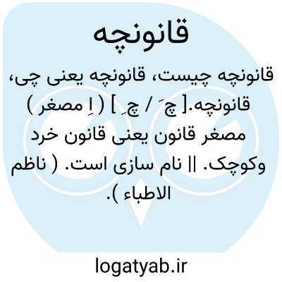 قانونچه. [ چ َ ] ( اِخ ) نام کتابی است در طب. ( ناظم الاطباء ). و چندین شرح و حاشیه دارد.