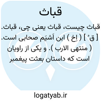قباث. [ ق ُ ] ( اِخ ) ابن اَشیَم صحابی است. ( منتهی الارب ). و یکی از راویان است که داستان بعثت پیغمبر اسلام را از غار حراء در سن 40سالگی روایت میکند. رجوع به امتاع الاسماع ج 1 ص 12 شود.