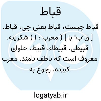 قباط. [ ق ُب ْ با ] ( معرب، اِ ) شکرینه. قبیطی. قبیطاء. قبیط. حلوای معروف است که ناطف نامند. معرب کبیده. رجوع به قبیط و قبیطی و قبیطاء و قبیطه و قبیته و قبیده شود.