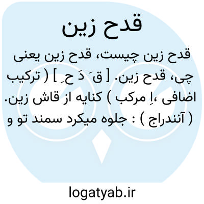 لغت نامه دهخدا قدح زین. [ ق َ دَ ح ِ ] ( ترکیب اضافی،اِ مرکب ) کنایه از قاش زین. ( آنندراج ): جلوه میکرد سمند تو و تمکین میریخت آب حیوان ز کنار قدح زین میریخت.تائب ( از آنندراج ).