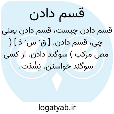 قسم دادن. [ ق َ س َ دَ ] ( مص مرکب ) سوگند دادن. از کسی سوگند خواستن. نِشْدَت.