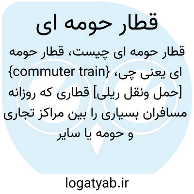 {commuter train} [حمل ونقل ریلی] قطاری که روزانه مسافران بسیاری را بین مراکز تجاری و حومه یا سایر مراکز پرجمعیت جابه جا می کند