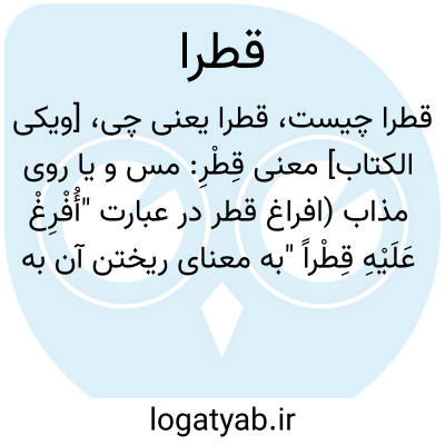[ویکی الکتاب] معنی قِطْرِ: مس و یا روی مذاب (افراغ قطر در عبارت "أُفْرِغْ عَلَیْهِ قِطْراً "به معنای ریختن آن به سوراخ و فاصلهها و شکافها است)