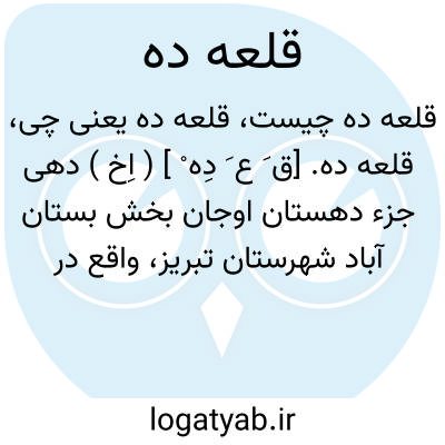 قلعه ده. [ق َ ع َ دِه ْ ] ( اِخ ) دهی جزء دهستان اوجان بخش بستان آباد شهرستان تبریز، واقع در 12هزارگزی شمال بستان آباد در مسیر شوسه اردبیل به تبریز. موقع جغرافیایی آن جلگه و سردسیری است. سکنه آن 262 تن است. آب آن از زهاب اوجان چای و چشمه و محصول آن غلات، یونجه، درخت تبریزی، سیب زمینی و شغل اهالی زراعت و گله داری است.راه مالرو دارد. ( از فرهنگ جغرافیایی ایران ج 4 ).