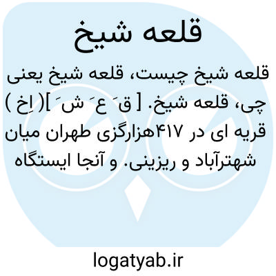 قلعه شیخ. [ ق َ ع َ ش َ ] ( اِخ ) دهی جزء دهستان غار بخش ری شهرستان تهران، واقع در 12هزارگزی جنوب ری و یکهزارگزی راه شوسه قم به تهران. این ده در جلگه قرار گرفته و هوای معتدل دارد. سکنه آن 83 تن است. آب آن از قنات و محصول آن غلات، صیفی، چغندر قند. و شغل اهالی زراعت است. راه ماشین رو دارد. ( از فرهنگ جغرافیایی ایران ج 1 ).