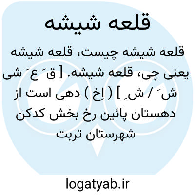 قلعه شیشه. [ ق َ ع َ شی ش َ / ش ِ ] ( اِخ ) دهی است از دهستان پائین رخ بخش کدکن شهرستان تربت حیدریه، واقع در 27هزارگزی شمال کدکن و 4هزارگزی باختر کال چغوکی. موقع جغرافیایی آن جلگه و معتدل است. سکنه آن 253 تن است. آب آن از قنات و محصول آن غلات،پنبه و شغل اهالی زراعت و گله داری و کرباس بافی است.راه مالرو دارد. ( از فرهنگ جغرافیایی ایران ج 9 ).