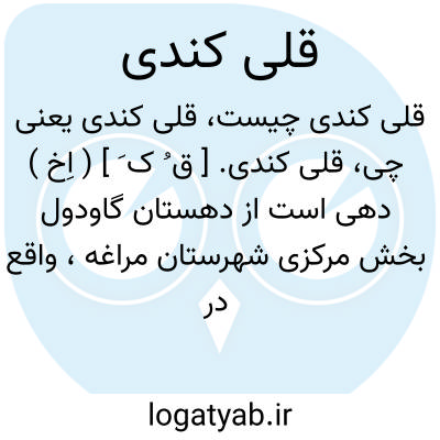 قلی کندی. [ ق ُ ک َ ] ( اِخ ) دهی است از دهستان گاودول بخش مرکزی شهرستان مراغه، واقع در 24هزارگزی جنوب باختری مراغه و در مسیر شوسه مراغه به میاندوآب. موقع جغرافیایی آن جلگه و هوای آن معتدل مالاریایی است. سکنه آن 210 تن است. آب آن از رودخانه مردی و چاه و محصول آن غلات، بادام، چغندر، کشمش، زردآلوو شغل اهالی زراعت و صنایع دستی زنان گلیم بافی است.راه مالرو دارد. ( از فرهنگ جغرافیایی ایران ج 4 ).