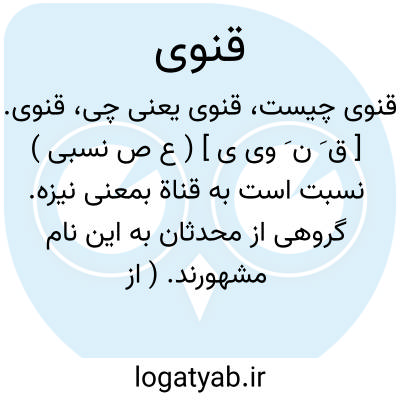 قنوی. [ ق َ ن َ وی ی ] ( ع ص نسبی ) نسبت است به قناة بمعنی نیزه. گروهی از محدثان به این نام مشهورند. ( از لباب الانساب ).