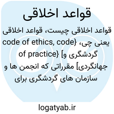 {code of ethics, code of practice} [گردشگری و جهانگردی] مقرراتی که انجمن ها و سازمان های گردشگری برای اعضای خود وضع کرده اند و آنها در هنگام انجام وظیفه موظف به رعایت آن مقررات هستند