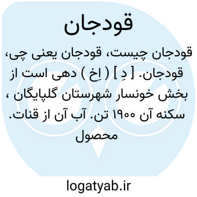 قودجان. [ دِ ] ( اِخ ) دهی است از بخش خونسار شهرستان گلپایگان، سکنه آن 1900 تن. آب آن از قنات. محصول آن غلات، تنباکو و لبنیات و شغل اهالی زراعت و گله داری است. این ده دارای دبستان و راه مالرو است. ( از فرهنگ جغرافیایی ایران ج 6 ).