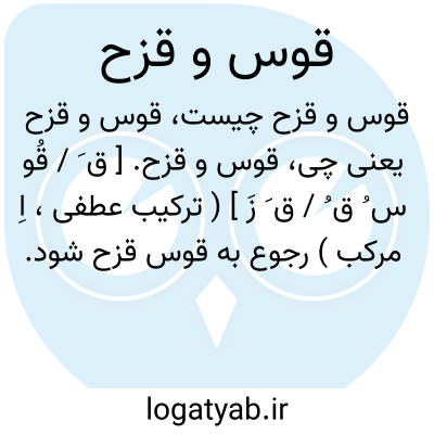 قوس و قزح. [ ق َ / قُو س ُ ق ُ / ق َ زَ ] ( ترکیب عطفی، اِ مرکب ) رجوع به قوس قزح شود.