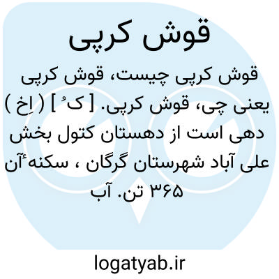قوش کرپی. [ ک ُ ] ( اِخ ) دهی است از دهستان کتول بخش علی آباد شهرستان گرگان، سکنه ٔآن 365 تن. آب آن از قنات و رودخانه کبودوال. محصول آن توتون سیگار. شغل اهالی زراعت، گله داری و صنایعدستی زنان آنجا کرباس و شال بافی است. راه مالرو دارد. ( از فرهنگ جغرافیایی ایران ج 3 ). قوش کوپری. رجوع به ترجمه مازندران و استرآباد رابینو ص 171 شود.