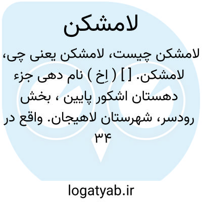 لامشکن. [ ] ( اِخ ) نام دهی جزء دهستان اشکور پایین، بخش رودسر، شهرستان لاهیجان. واقع در 34 هزارگزی جنوب رودسر.دارای 250 تن سکنه. ( فرهنگ جغرافیائی ایران ج 2 ).